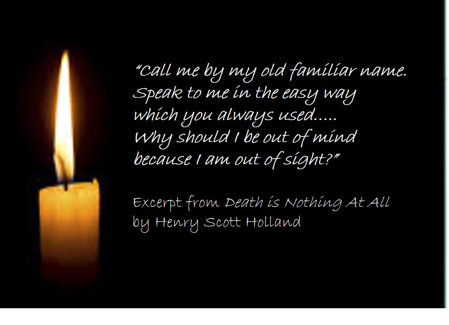 In the poem Death is Nothing At All by Henry Scott Holland, reminds us that whilst our loved ones have left our physical world, we need not forget them, or ignore them.