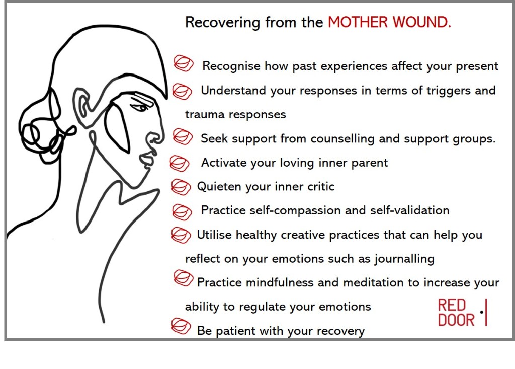 Throughout the recovery from a mother wound, and especially at this time, journalling your thoughts is particularly helpful. Start writing some helpful prompts that can start your ability to reflect on these situations. Here are some prompts which might help.