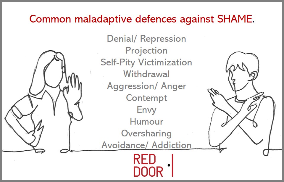 - Avoidance/ Addiction – When we have strong shame we may choose to self-medicate to escape the negative feelings and thoughts associated with our self-hatred.