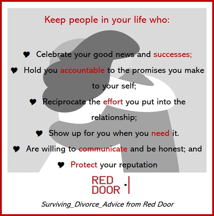 As a counsellor, I help individuals and groups navigating this process. Our RED DOOR proprietary research on divorce indicates that having good friends is one of the most important supports that divorcees say helped them navigate the process positively. It’s great when friends turn up in support of the divorce.