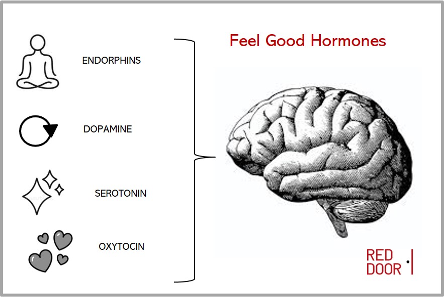 Hormones are chemical messengers, which, once released into your bloodstream, control many bodily functions, including how you feel. There are four hormones associated with feeling good: Dopamine, Serotonin, Endorphins and Oxytocin.