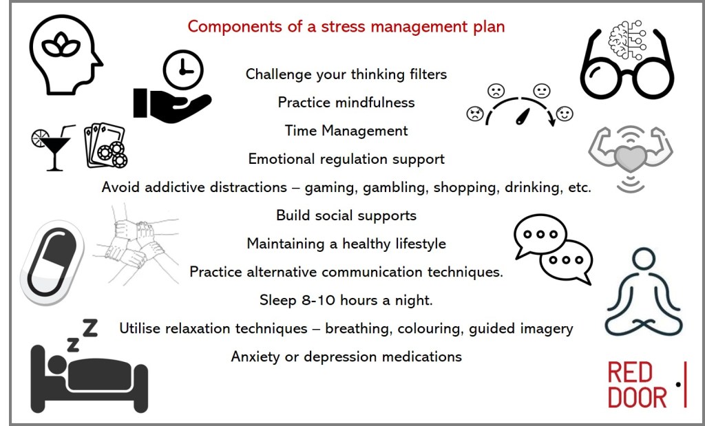 Whilst some work experiences invariably include some toxic practices and/or people, sometimes our experience of stress is created by our personal perceptions of a situation. For example, if you hold onto black and white thinking you will be prone to judge yourself and others more in stressful situations. If you tend to filter information and feedback you may feel, unjustly, negatively about yourself when mistakes occur. For a full assessment of your thinking filters read our RED DOOR blog on this topic.